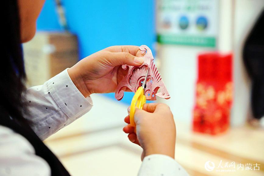 非遗传承人展示剪纸技艺。实习生 李子荟摄