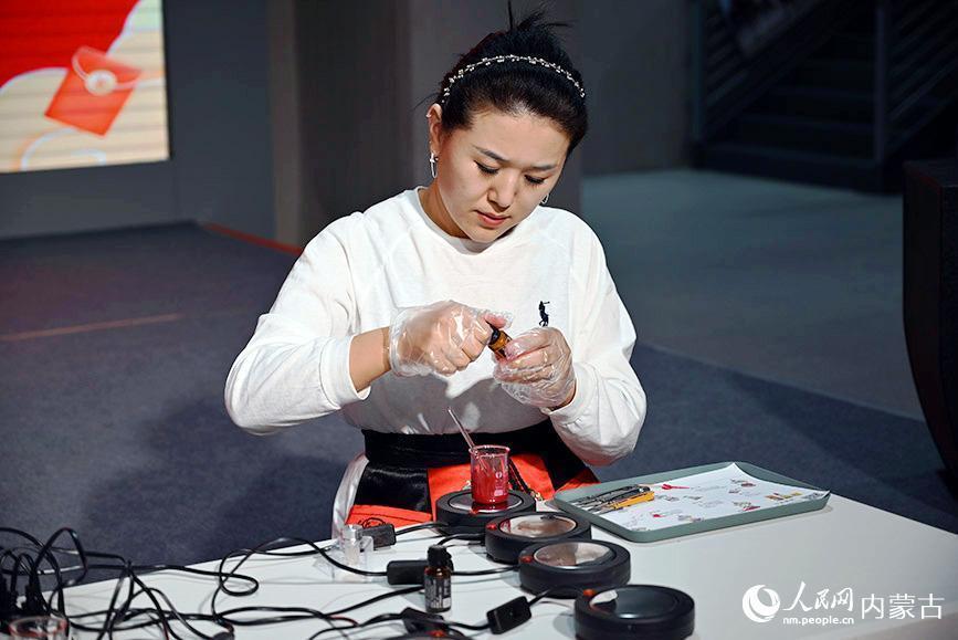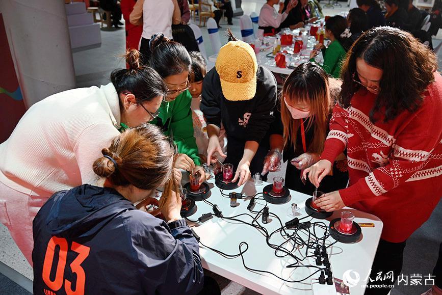 活动现场,剪纸、面塑、皮雕、烫画等传统非遗项目琳琅满目,非遗传承人现场展示制作过程并为大家讲解非遗产品,吸引众多市民围观。在“内蒙古守艺”新春主题活动中,市民在老师的指导下制作非遗酥油口红,现场气氛热烈,参与者在沉浸式体验中感受传统文化的温度与魅力。此外,还有集章打卡、年货市集福袋等活动,让市民在互动中感受多彩年味。